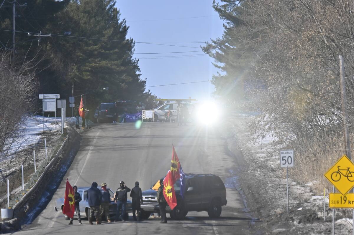 Des petits groupes se sont rassemblés à différents endroits de la route 344 pour bloquer l'accès aux automobilistes avec leurs voitures. Les manifestants brandissent des drapeaux aux couleurs des Premières Nations.