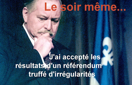 À partir de 1980, tout était plié. Le reste n'a été que la poursuite de la chute. Ayant accepté de se dépouiller de toute représentation politique indépendante, les Canadiens-Français ne pourront tirer aucun bénéfice de s'être exprimés à hauteur de 61 % pour des changements constitutionnels en 1995. Ainsi, Jacques Parizeau avalera sans délai une défaite contestable, mais il ne revendiquera aucune forme de victoire. C'était le prix à payer pour avoir fait le deuil de son identité canadienne-française, remplacée par une communauté de destin inédite avec la communauté d'expression anglaise aux droits consacrés. De nouveaux ¨compatriotes¨ nous étaient donnés, ils nous tiendraient captifs plus que jamais auparavant.