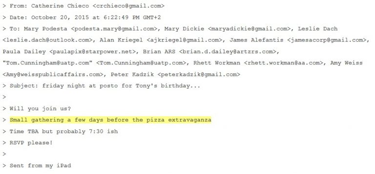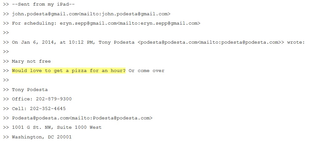 Pour ceux qui auraient encore le moindre doute sur le fait que les nombreuses références aux pizzas dans les emails de Podesta n'ont rien de culinaire...