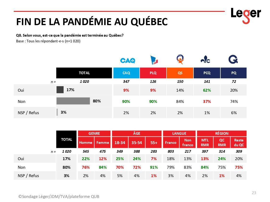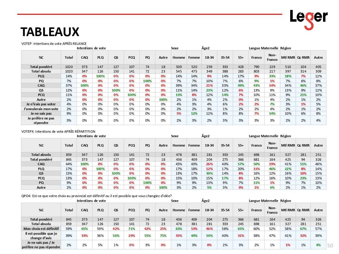 - Écoutez l'entrevue de Richard Martineau avec Christian Bourque, cice-président chez la firme de sondages Léger sur QUB radio :